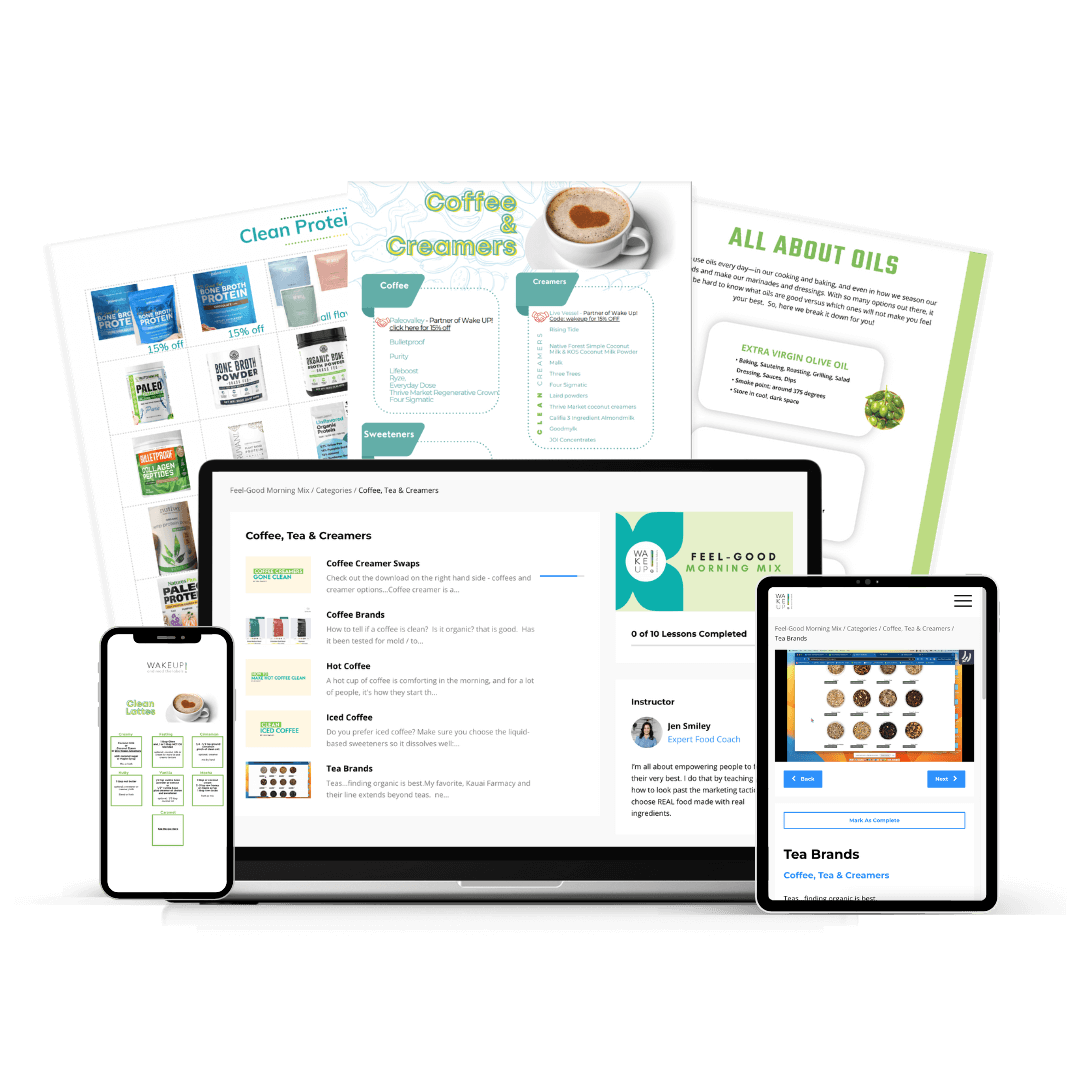 Get instant access to all of the clean coffees on the market. Creamers and clean sweeteners that won’t spike your blood sugar helping you lose weight and stay fuller longer. Learn how to make clean lattes with our recipes, plus videos and links for directing ordering. Guide to clean proteins (and vegan options) on the market plus discount links to save money.